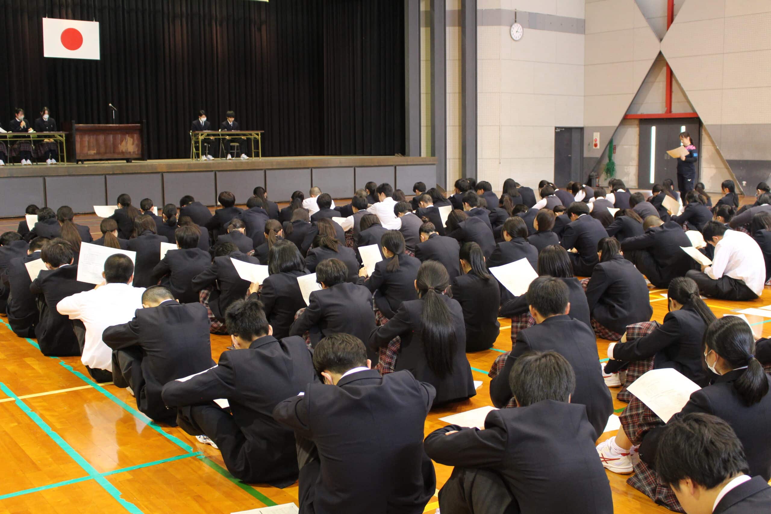 本日6時間目に全校生徒が体育館に集まり、生徒総会と家庭クラブ総会が行われました。
