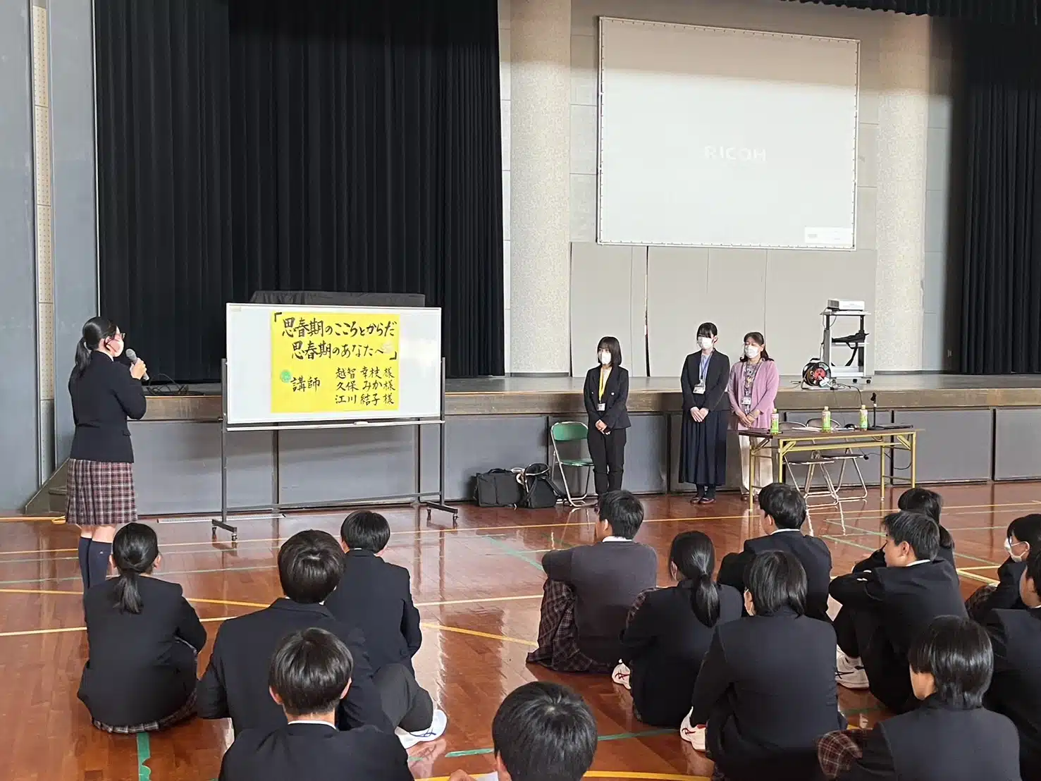 「思春期のこころとからだ 思春期のあなたへ」と題して、多感な時期だからこそ感じる不安や、性についてなど、大人に近づいていっている生徒たちにとって有意義なお話をして頂きました。