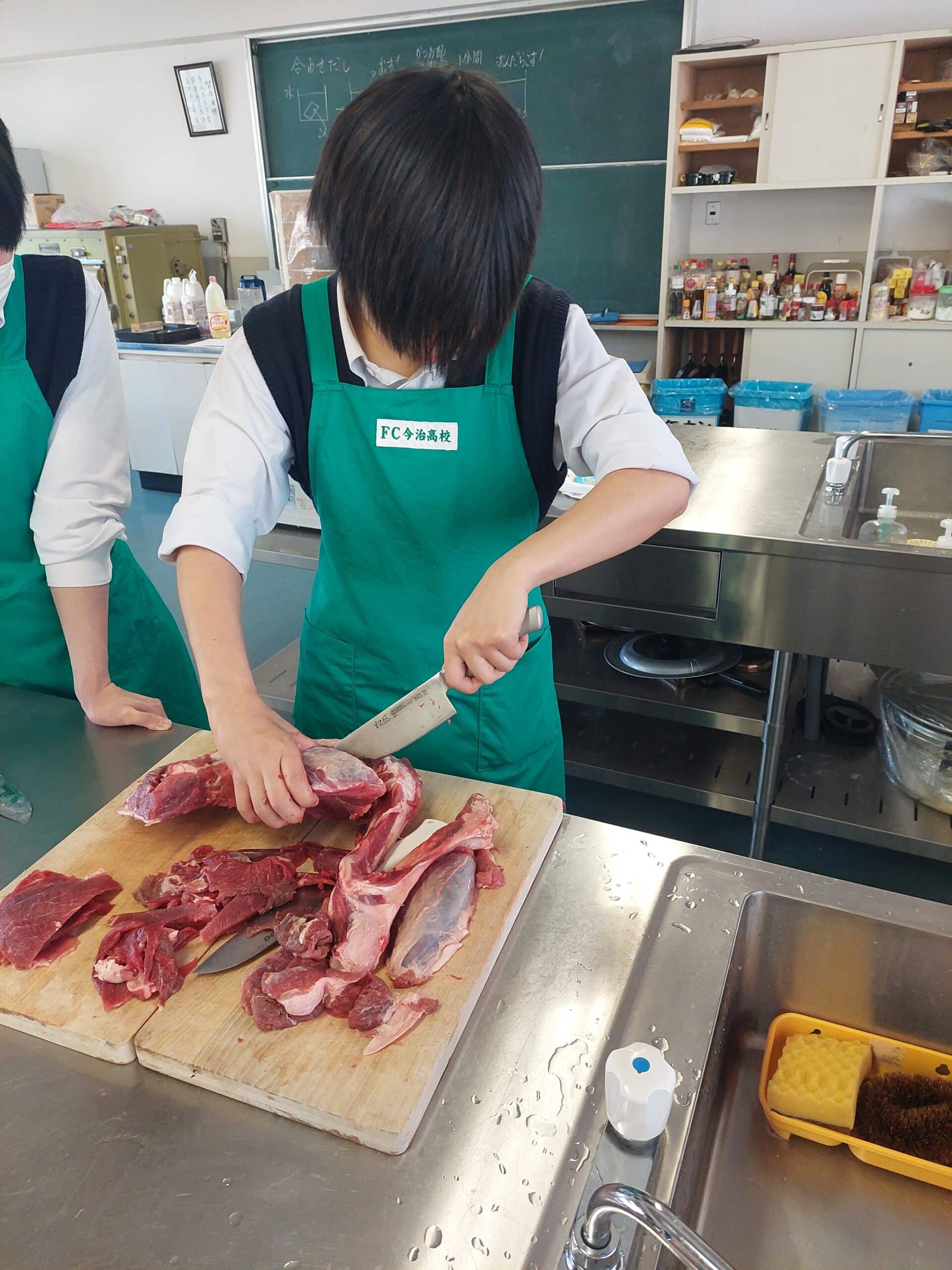 また、塊の骨付きのお肉を捌くことが初めての生徒たちは興奮しながら解体作業をしていました。