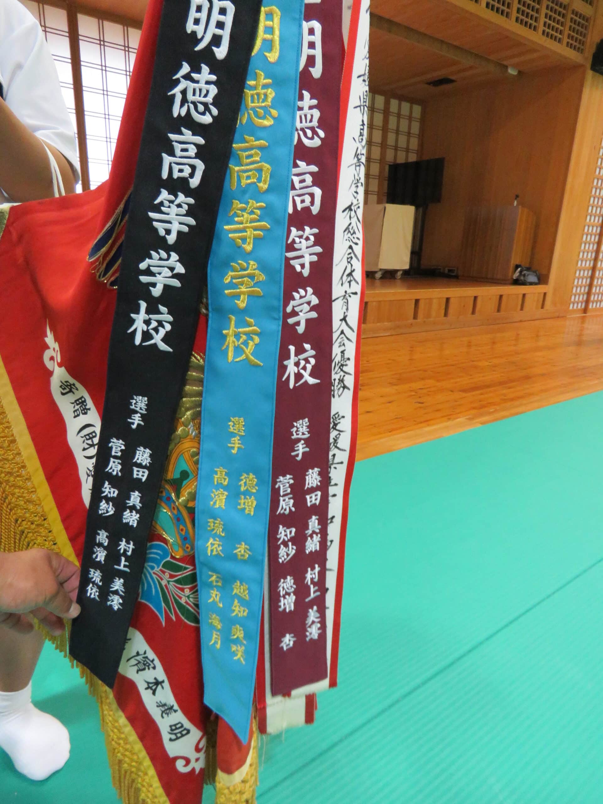 女子柔道部の優勝旗・杯の返還も行いました。また、今年も優勝旗を持ち帰ってくれることを期待して応援していきましょう!