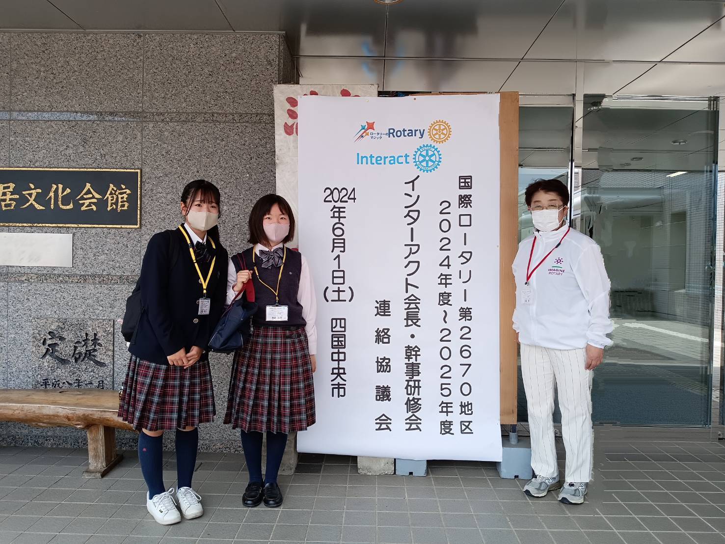 6月1日(土)、四国中央市の土居文化会館で開催された、2024-25年度インターアクトクラブ会長・幹事研修会に、2年生のリーダー2人が参加してきました。