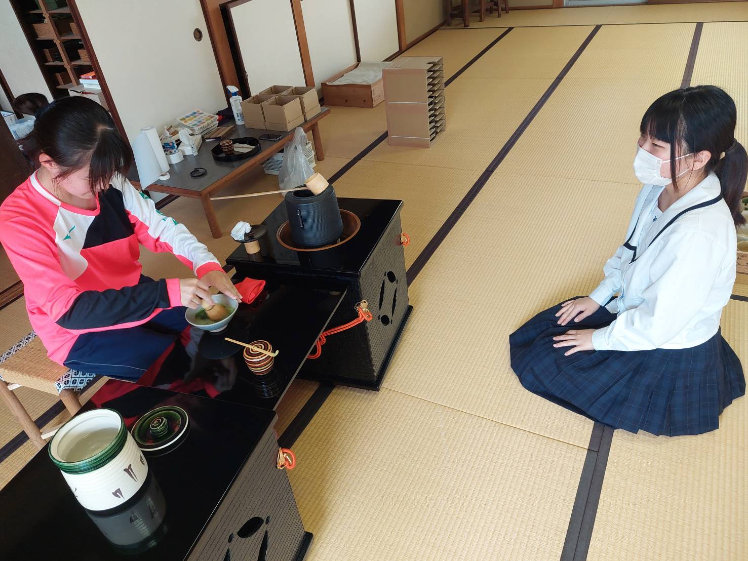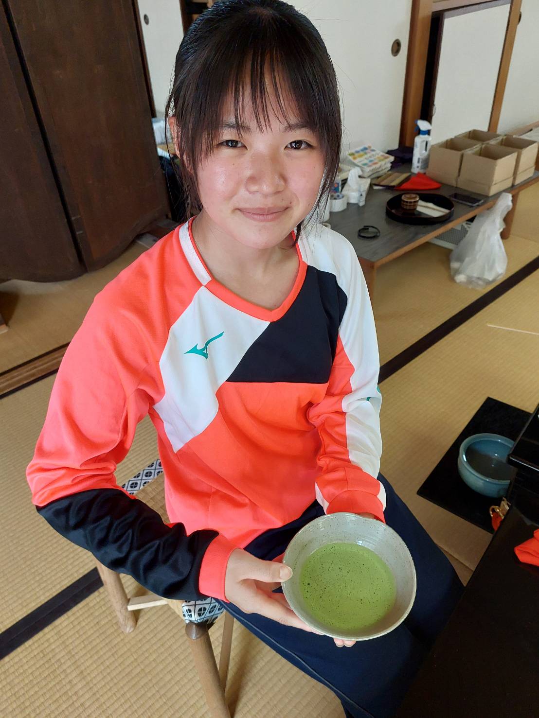 生徒にお茶を点てて貰いました。泡もきめ細かく大変美味しかったです!