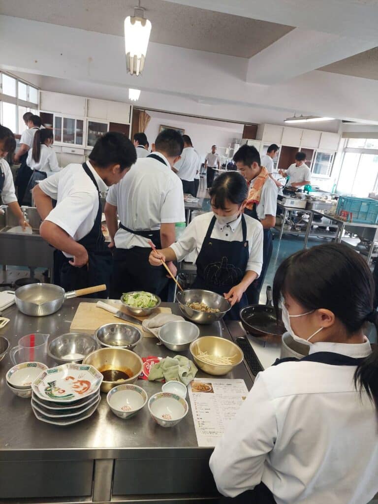 本日は2年A組で調理実習が行われました。