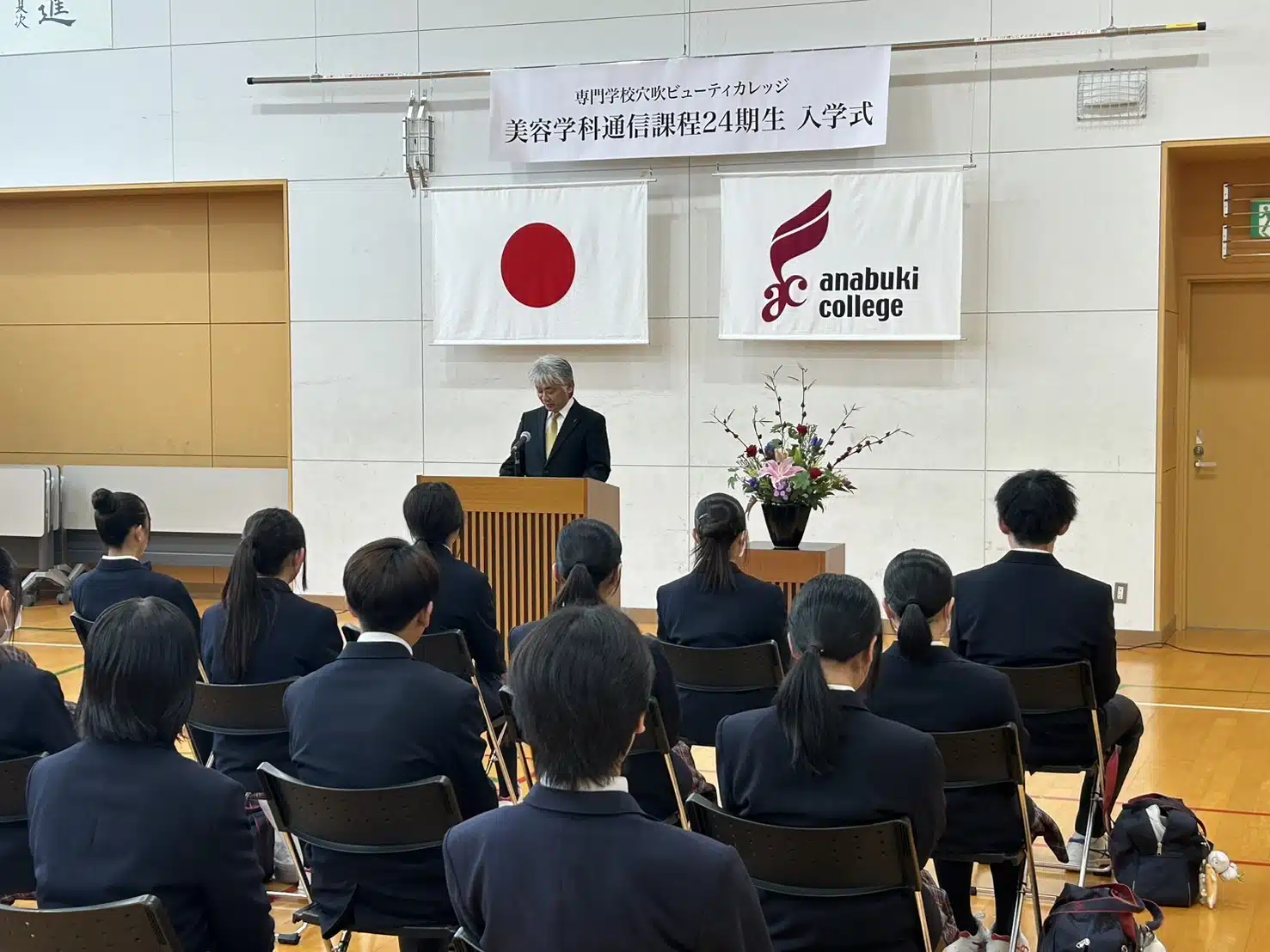 昨日10月7日に穴吹ビューティーカレッジにて、1年B組の専門学校穴吹ビューティーカレッジ美容学科通信課程24期生入学式が行われました。