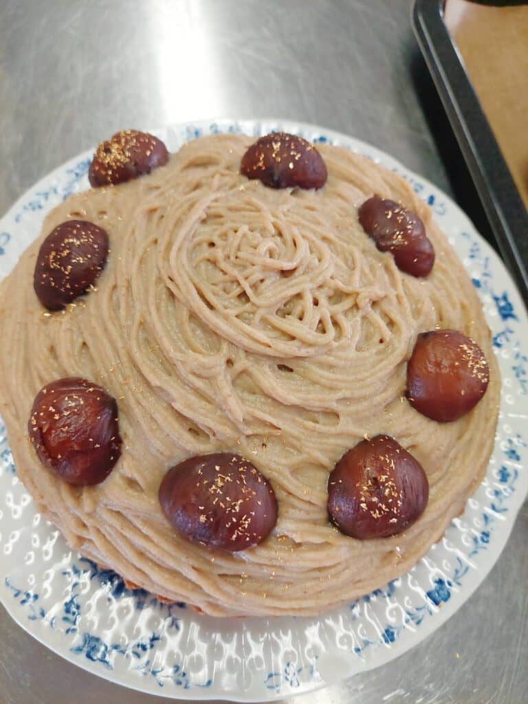 甘栗の殻をむくところから始まり、マロンクリームを一から作りました。最後に濾すことでより滑らかな口当たりになり、口いっぱいに栗の甘い香りが広がりました。