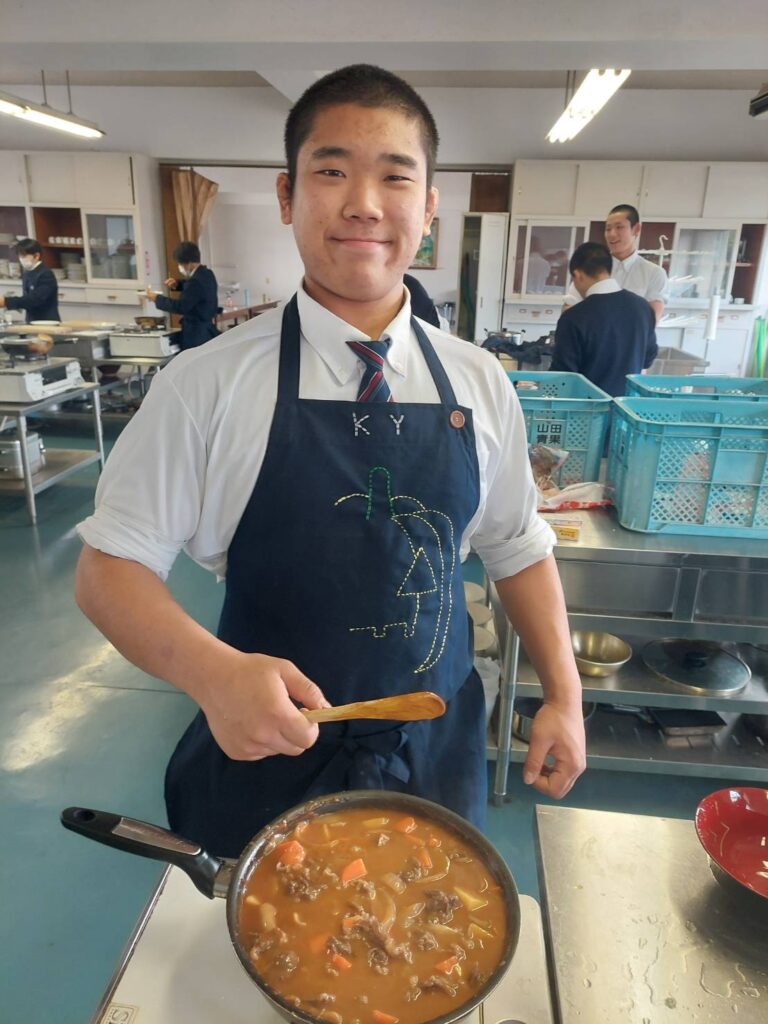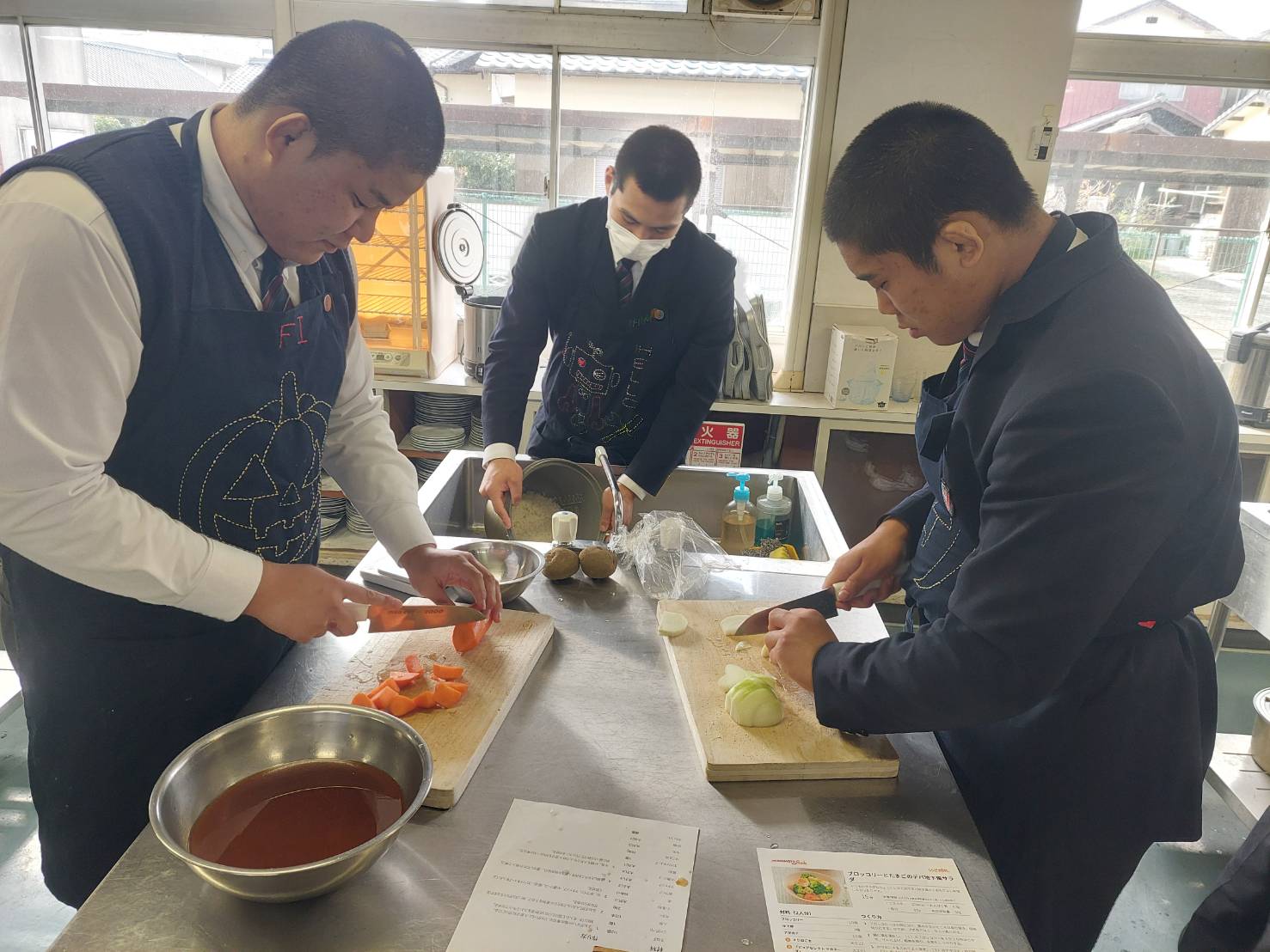 ビーフシチューはあまり親しみがなく、初めて食べる生徒もいました。