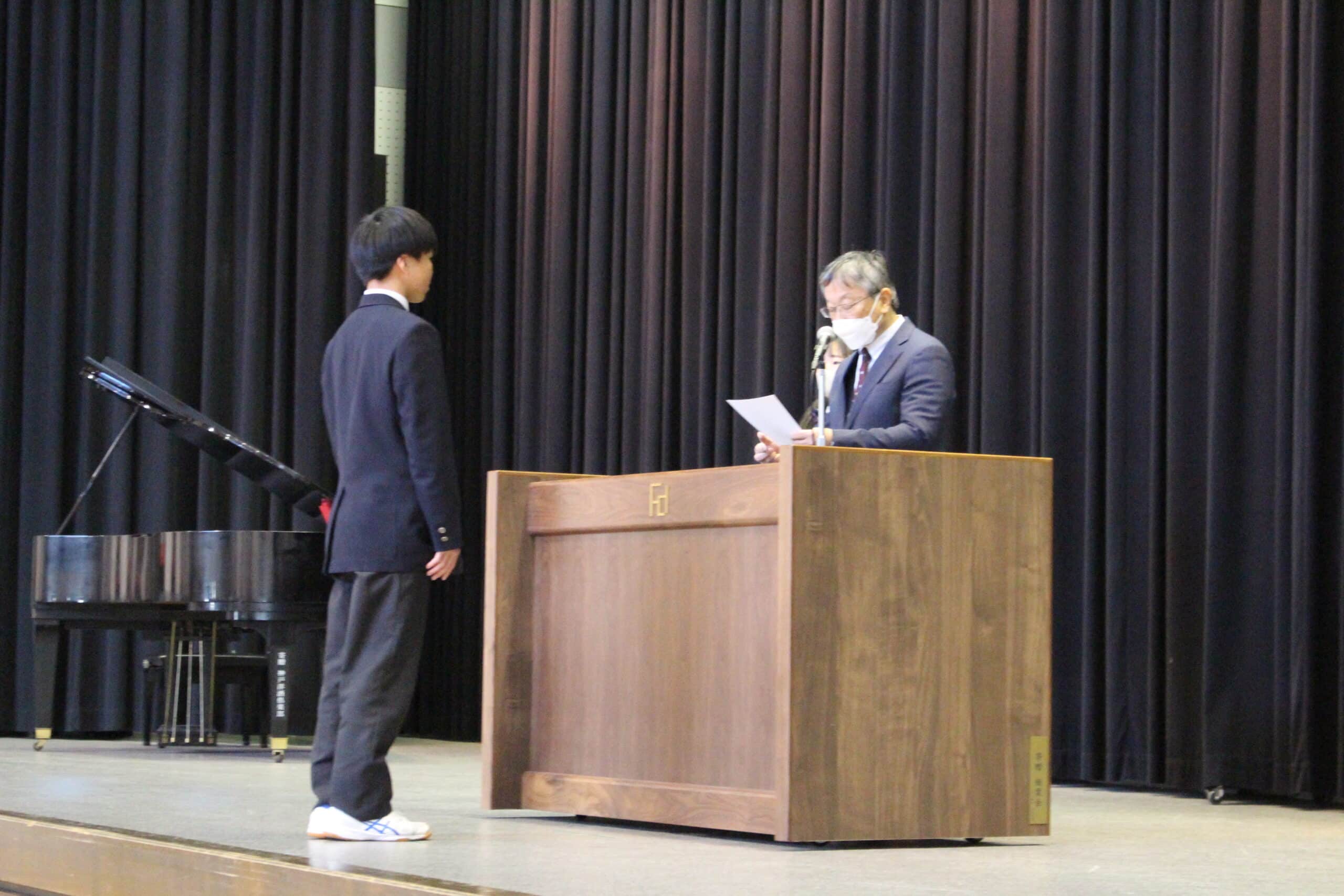 その後、第3学期学級委員長・副委員長認証式が行われました。