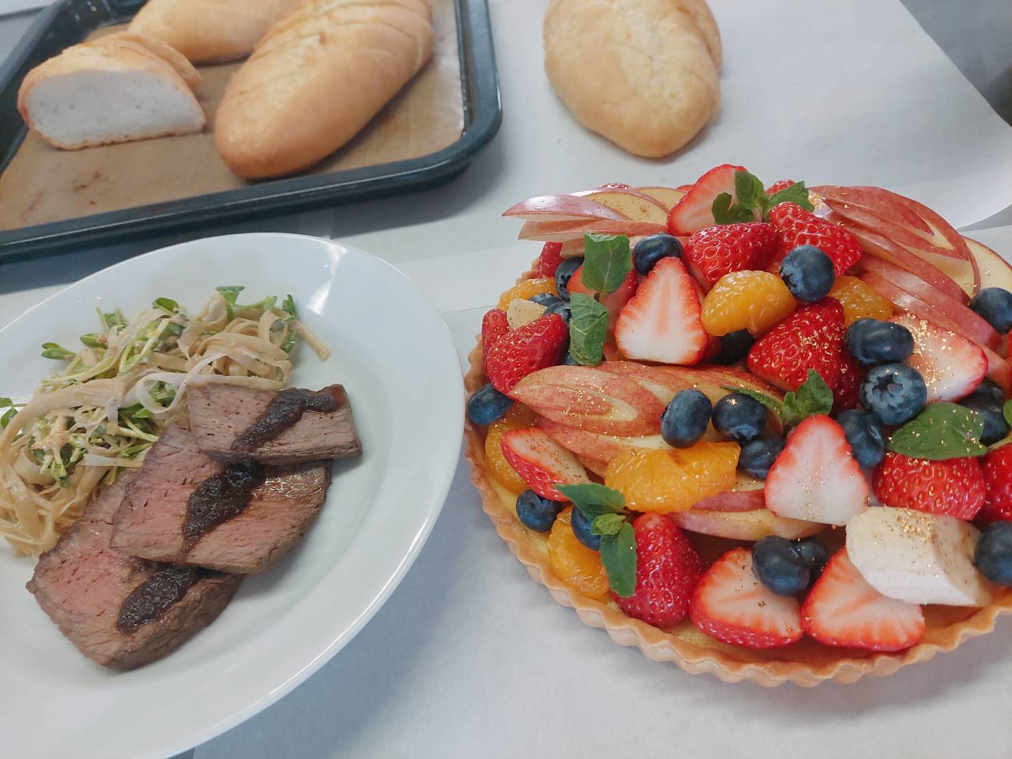 先週10日(金)に授業があり、カントリークッペ、ローストビーフ、ごぼうサラダ、フルーツタルトを作りました。