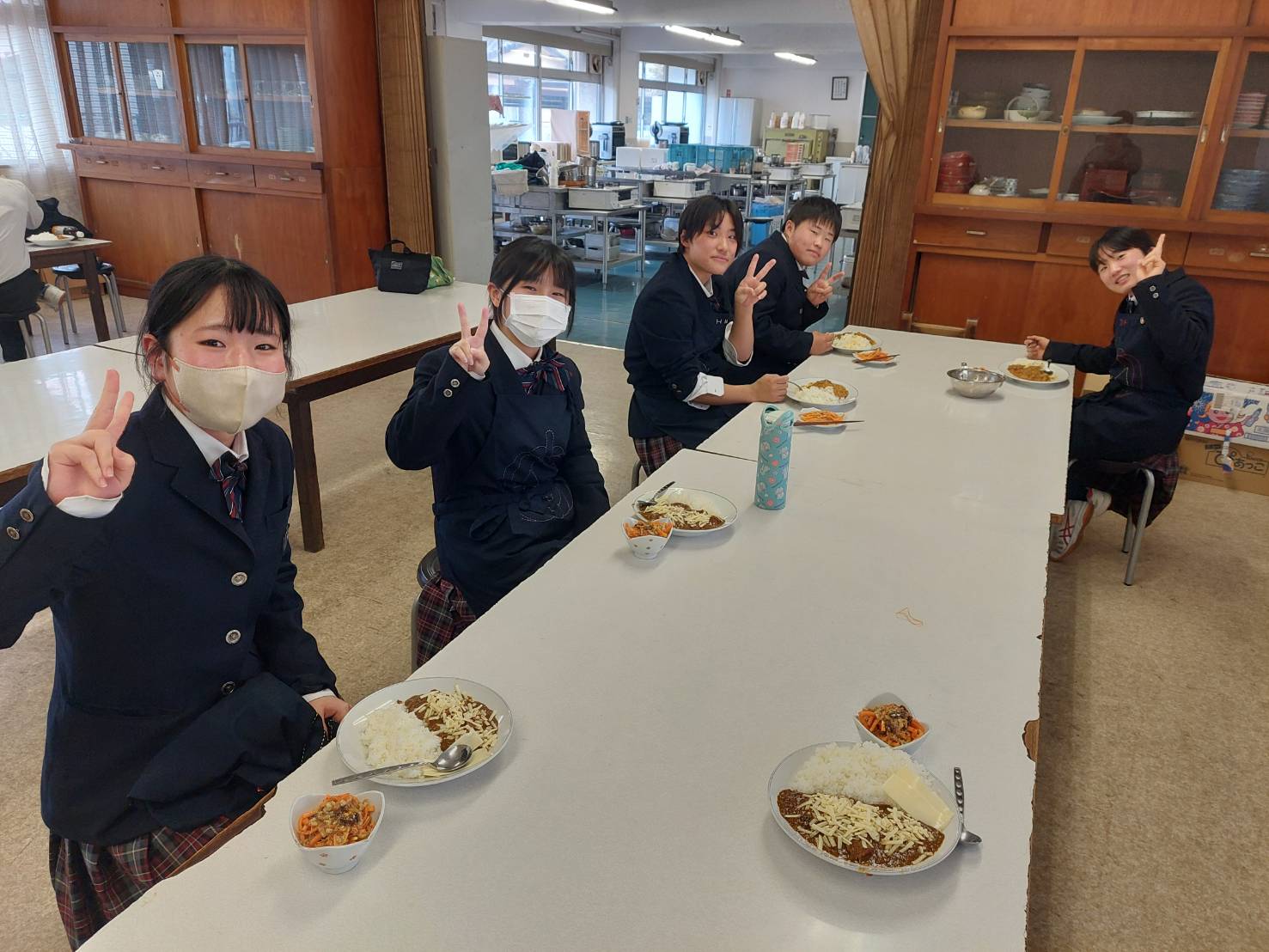 本日の紹介は2年A組の調理の授業です。久しぶりの調理の授業でしたが、みんな和気あいあいと調理を行っていました。
