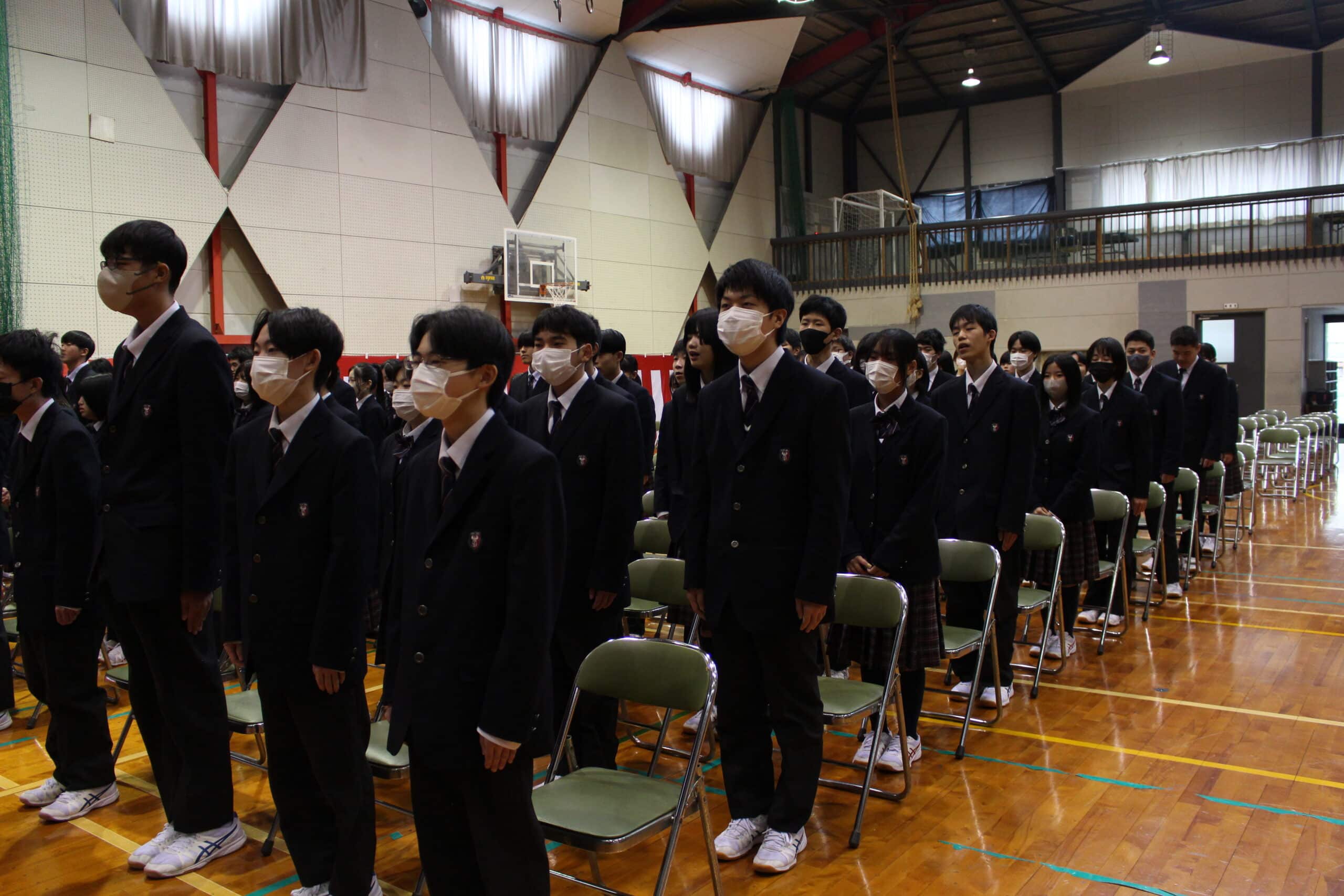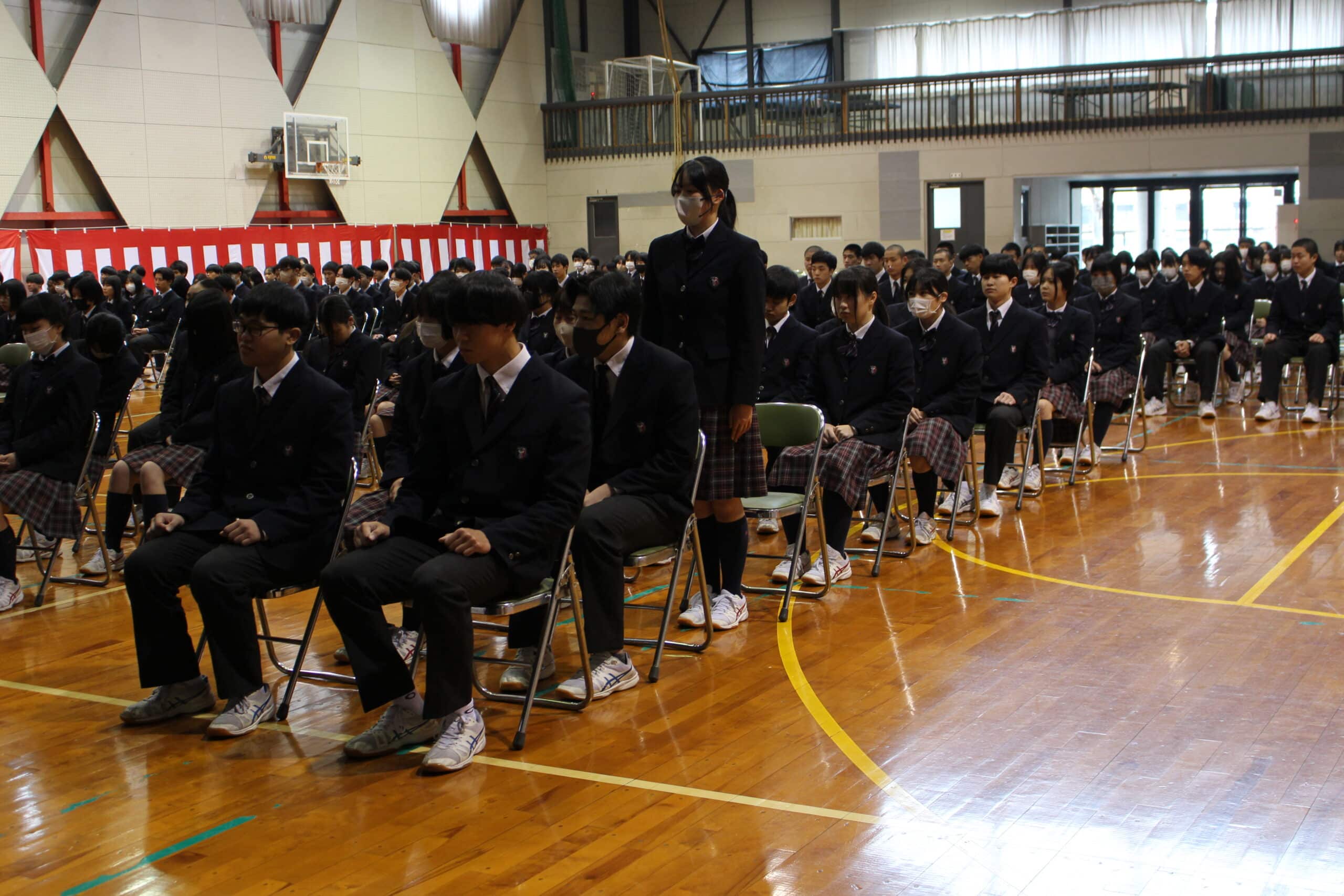 3年生、1,2年生共に緊張した面持ちで式が行われ、明日の本番に向けて良い準備ができたと感じています。