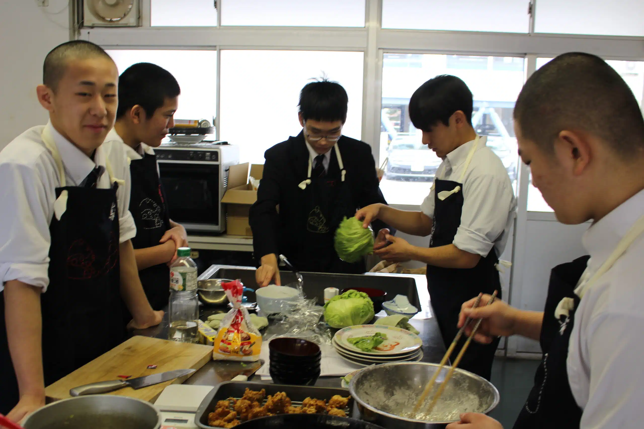 調理実習を行いました。献立は白ご飯、唐揚げ、卵スープでした。