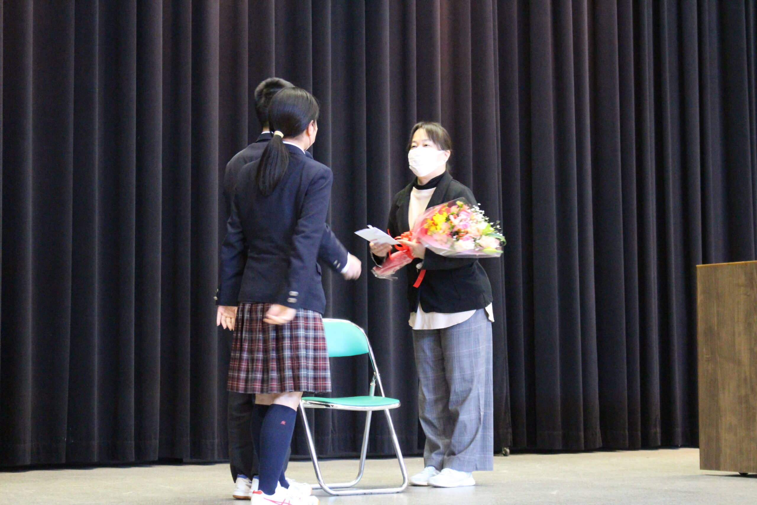今年度で学校を去られる先生への感謝を述べさせて頂き、花束贈呈も行われました。
