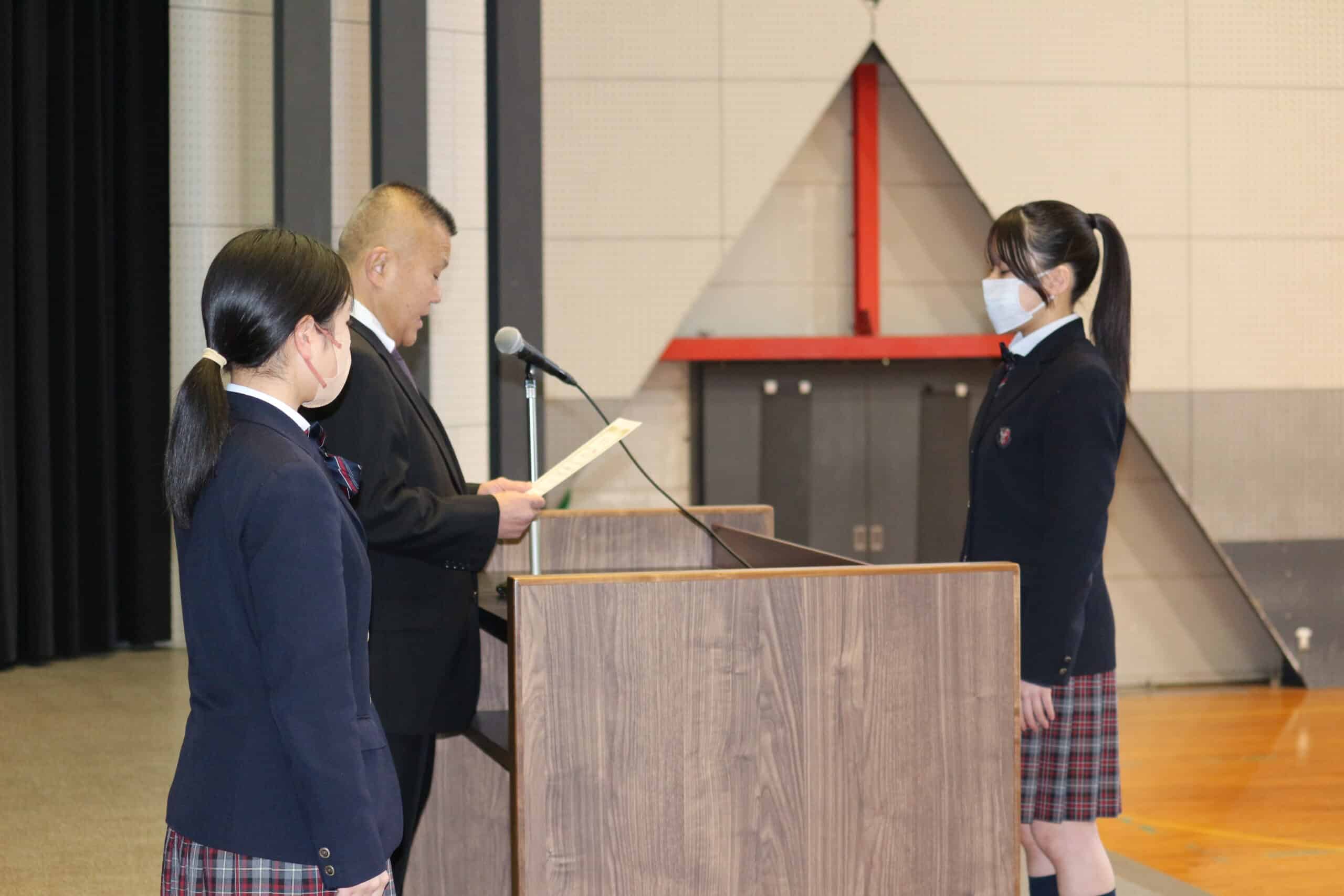 本日19日(水)に第3学期終業式・離任式、表彰式が行われました。