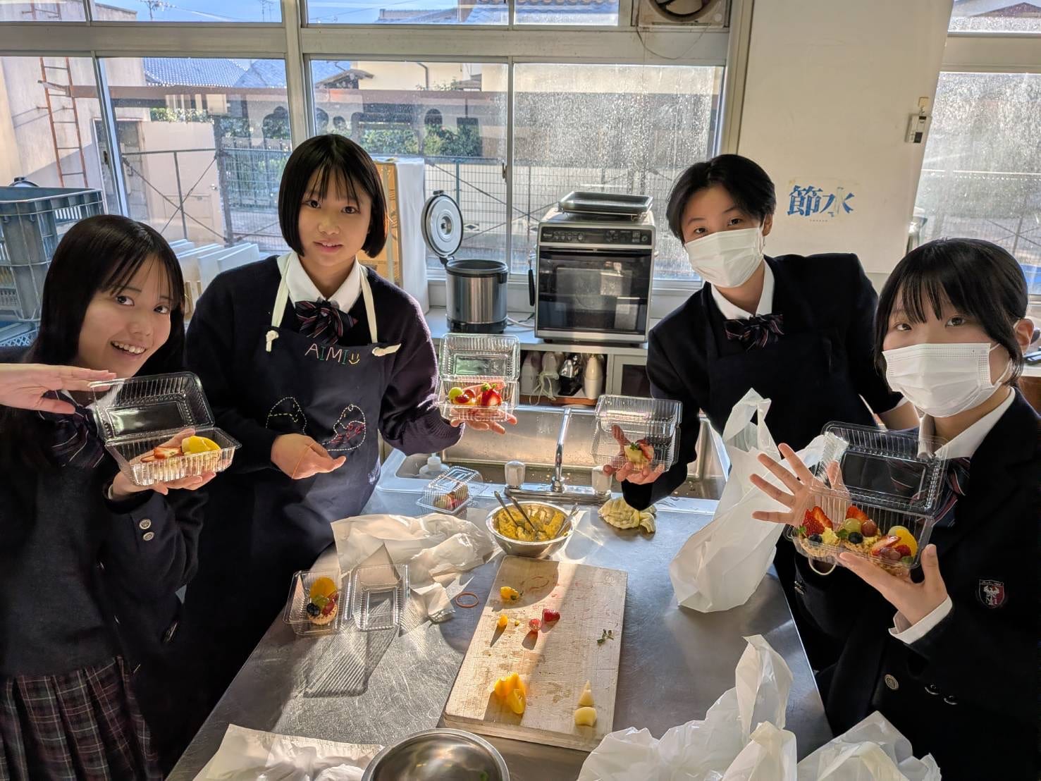 2年A組の家庭科では、フルーツたっぷりの「フルーツタルト」づくりに挑戦しました!