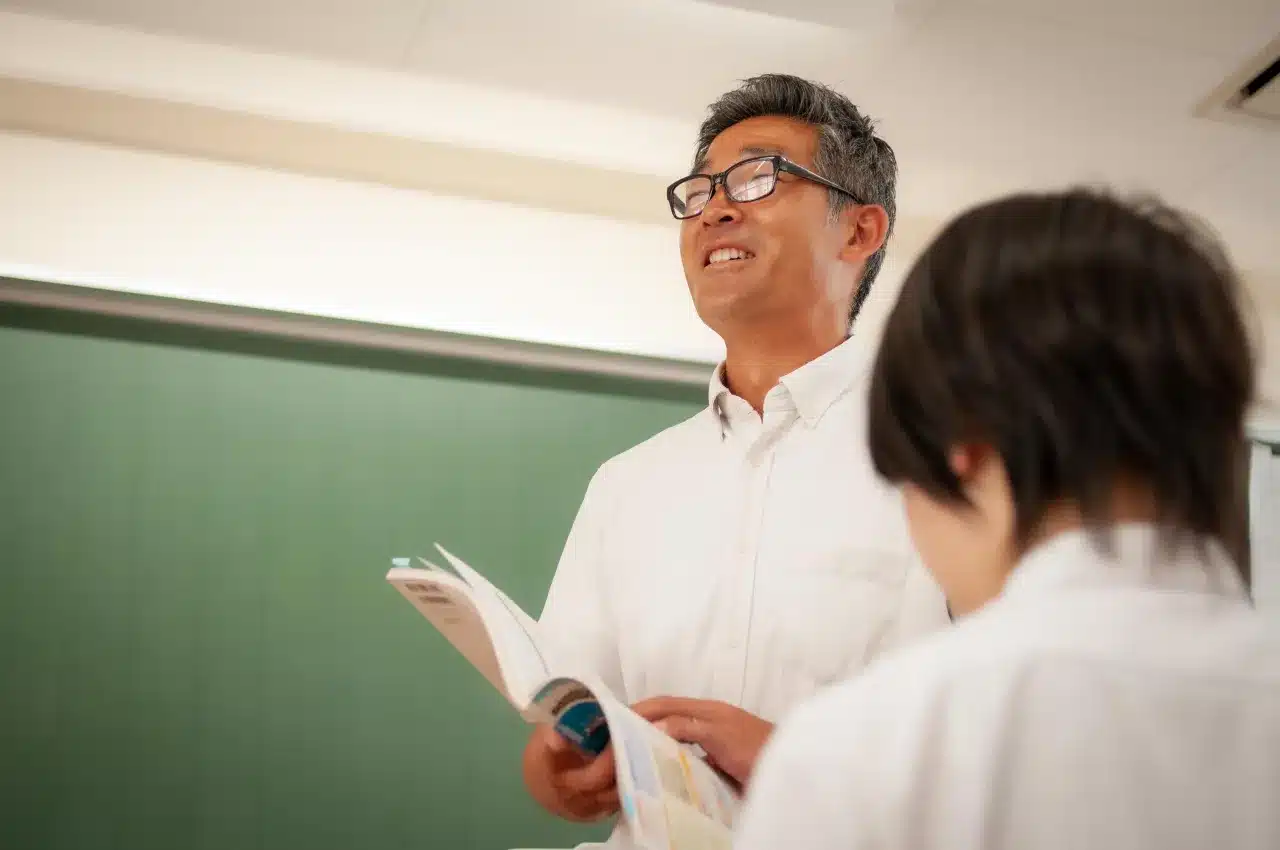 私が教員を志したきっかけは、中学時代に出会った陸上部の先生の姿に憧れたことでした。三種競技に打ち込み、特に砲丸投で結果を残せたことから、明徳の監督から声をかけていただき進学を決意しました。陸上漬けの日々の中で、高校1年の秋に大きなけがで手術を受けることに。仲間が記録を伸ばす中で、焦りや不安を感じる時期もありましたが、先生方や仲間の支えもあり2年の新人戦から競技に復帰し、3年生ではインターハイと国体への出場という目標を達成することができました。大学でも陸上を続け、卒業の際に母校で教員にならないかと声をかけていただき、迷うことなくこの道を選びました。